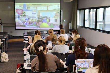 国際文化学部の授業では、行政・民間企業と連携した授業も実施しています。2025年度には山口市と締結した受託事業の一環として、DX人材育成に向けた短期集中型教育カリキュラムの構築を行いました。また、県がサテライトオフィスに誘致した企業から、視覚的な操作でアプリケーションを開発する手法を学びました。