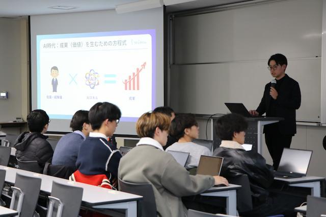 国際文化学科・情報社会学科で、企業と連携した授業を行いました。東京都に本社を置き、山口県山口市と青森県八戸市、弘前市にローコード開発の専門チームと大規模なオペレーションセンターを持つ(株)フォリウムと、生成AI環境構築を専門とする熊本発のスタートアップ企業(株)mimuから講師を招きました。生成AIツールを使ったローコード・ノーコードのアプリ作成に関する講義と演習です。