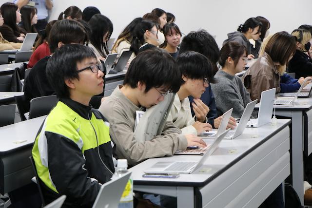 「AIを使うだけの利用者から、AIアプリの作成者になる」をゴールとし、2回にわたって、生成AIの基礎知識、なぜAIスキルが必要なのか、利用の心構えや倫理、ノーコードAI開発ツールの種類、構築フローに慣れるための演習、RAG(検索拡張)や画像作成アプリ作成の演習などに約100名の一年生がチャレンジしました。
